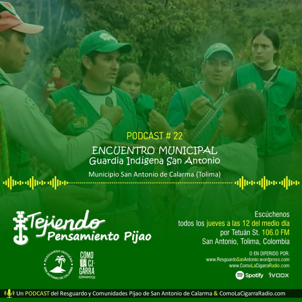 Vuelve el equipo de Tejiendo pensamiento Pijao con su caminar de la palabra en el municipio de San Antonio, Tolima. En esta oportunidad contamos con la participación de líderes y lideresas Guardias Indígenas de las diferentes comunidades del municipio de San Antonio de Calarma, que se reunieron para discutir y formular propuestas que aporten al Plan Nacional de Desarrollo que actualmente se está definiendo a nivel nacional. Los comuneros Pijaos formularon propuestos relacionadas con el territorio, la Jurisdicción Especial Indígena, salud, educación, medio ambiente, entre otros temas claves para la realización de los planes de vida del pueblo Pijao en el Tolima. En este programa les contamos algunos de los temas que se discutieron.