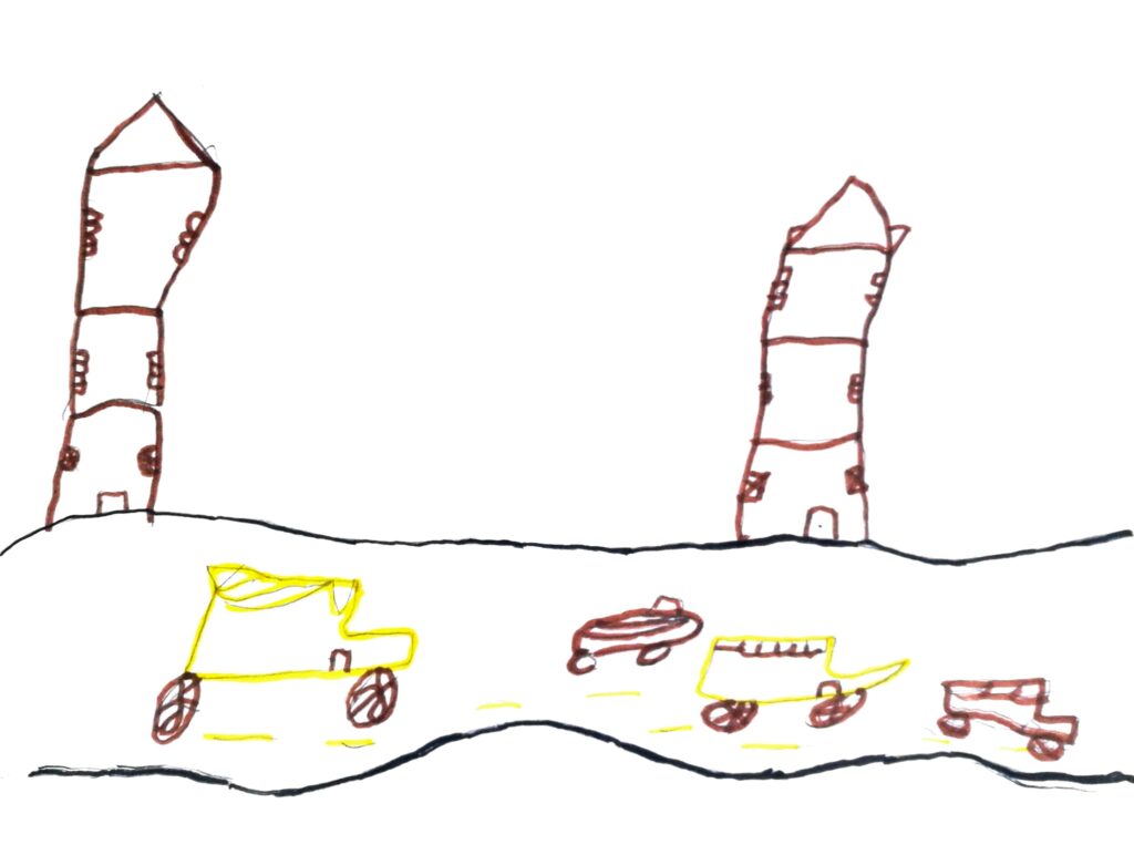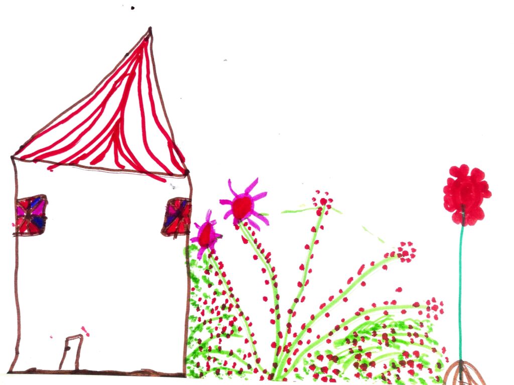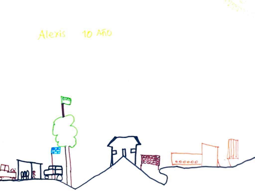Lideni Alonzo, de 9 años, dibujó su territorio en Honduras. También pintó a su madre, una lideresa defensora de la tierra. Por su lucha, su familia fue exiliada de su territorio. Foto: composición realizada por Giovanni Salazar, de Agenda Propia.