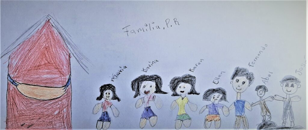 Tajamonae Rodríguez Ponare. Los cinco hermanos y sus padres. Foto: Dibujo de María Fernanda Rodríguez Ponare.