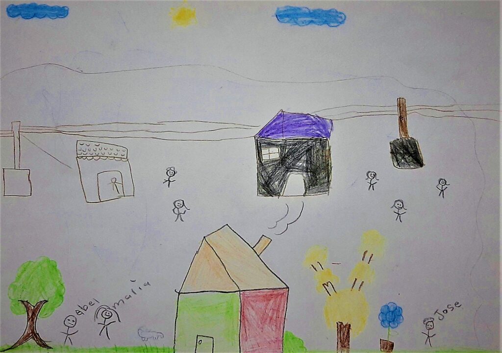 Dibujos realizados por la niña María Fernanda Rodríguez Ponare y sus hermanos José Eduardo y Karen. Foto: Composición de Giovanni Salazar, del equipo intercultural de Agenda Propia.