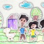 Dibujos realizados por la niña María Fernanda Rodríguez Ponare y sus hermanos José Eduardo y Karen. Foto: Composición de Giovanni Salazar, del equipo intercultural de Agenda Propia.