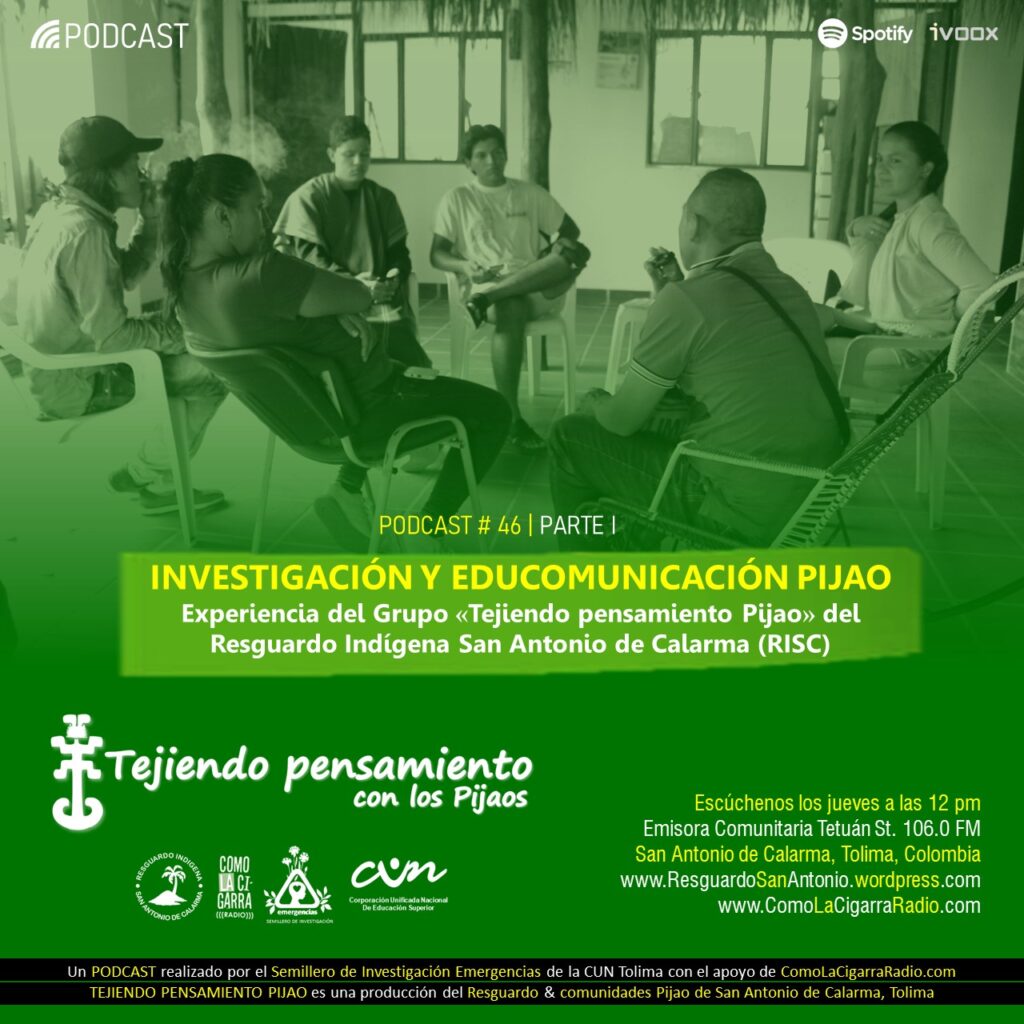 Vuelve el equipo de Tejiendo pensamiento Pijao con su caminar de la palabra. En esta oportunidad los manayax del grupo «Tejiendo pensamiento Pijao» de San Antonio de Calarma fueron entrevistados por los jóvenes del Semillero de Investigación Emergencias de la CUN Regional Tolima. En esta primera parte la conversa tuvo como temas centrales los inicios del proceso, las motivaciones que llevaron a los integrantes del grupo a realizar investigaciones y producciones comunicativas autónomas sobre la historia del pueblo Pijao en el municipio y la relación que tiene esta apuesta con el proceso de recuperación de Ima.
