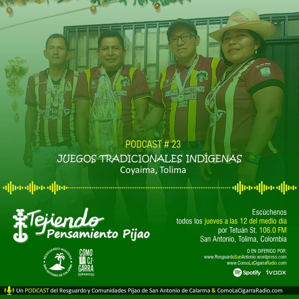 Vuelve el equipo de Tejiendo pensamiento Pijao con su caminar de la palabra en el municipio de San Antonio, Tolima. En esta oportunidad los indígenas de San Antonio participamos en los juegos tradicionales indígenas 2022, realizados en el territorio ancestral de Coyaima, Tolima. Estuvimos hablando con los compañeros del pueblo Nasa del sur del Tolima, pueblo de paz, con quienes los Pijaos hemos construido el proceso indígena del departamento. Los juegos tradicionales son un espacio para compartir la interculturalidad, la amistad, la solidaridad, la organización y la re-existencia frente a los desequilibrios que nos quiere imponer el mundo occidental.