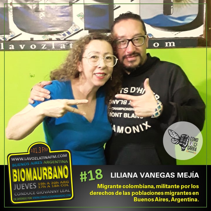 En esta emisión # 18 de BIOMAURBANO RADIO, tuvimos como invitada especial a Liliana Vanegas Mejía, colombiana, ex sindicalista y defensora de DDHH, quien nos contó sobre las amenazas y la insostenible situación de temor que vivió en Colombia, y que la obligó a migrar de su país hacia la Argentina en el año 2012. Liliana actualmente reside en el país austral y adelanta diferentes micro emprendimientos de cosmética y tejidos artesanales, entre otros, que le han permitido continuar con su vida y militancia en pro de los/las trabajadores y los migrantes.