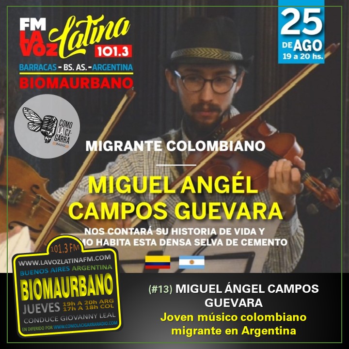 En esta emisión # 13 de BIOMAURBANO RADIO, tendremos como invitado especial a Miguel Ángel, joven músico colombiano, quien nos contará sobre su vida como líder migrante, sobre los proyectos musicales y el coro de chicos que ha venido organizando desde REFUGIO.