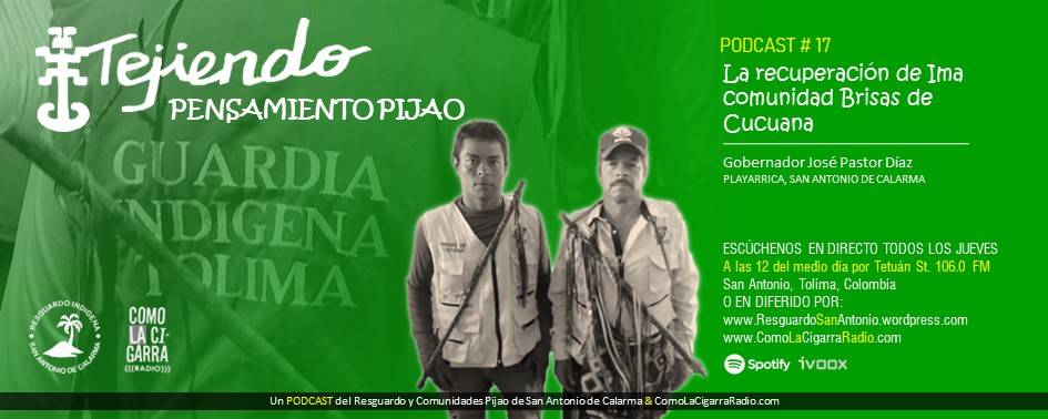 Vuelve el equipo de Tejiendo pensamiento Pijao con su caminar de la palabra en el municipio de San Antonio, Tolima. En esta oportunidad presentamos la primera parte de la entrevista con el mayor José Pastor Díaz, gobernador de la comunidad Pijao Brisas de Cucuana ubicada en el corregimiento de Playarrica del municipio, quien nos cuenta cómo se creó su comunidad, así como los logros obtenidos y las dificultades que han enfrentado en el proceso.