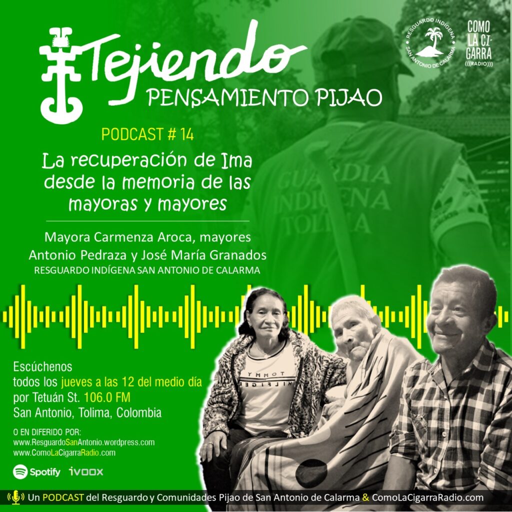 Vuelve el equipo de Tejiendo pensamiento Pijao con su caminar de la palabra en el municipio de San Antonio, Tolima. Este es un programa especial, porque nos encontramos con la mayora Carmenza Aroca y lo mayores Antonio Pedraza y José María Granados para conversar cómo fue que lucharon para poder conseguir lo que hoy es el Resguardo Indígena San Antonio de Calarma. Ellos son parte del grupo fundador del resguardo, y en esta primera parte de la conversa nos cuentan sobre los líderes iniciadores del proceso organizativo, la recuperación cultural y las dificultades que tuvieron que enfrentar en este caminar de la resistencia indígena el San Antonio, Tolima.