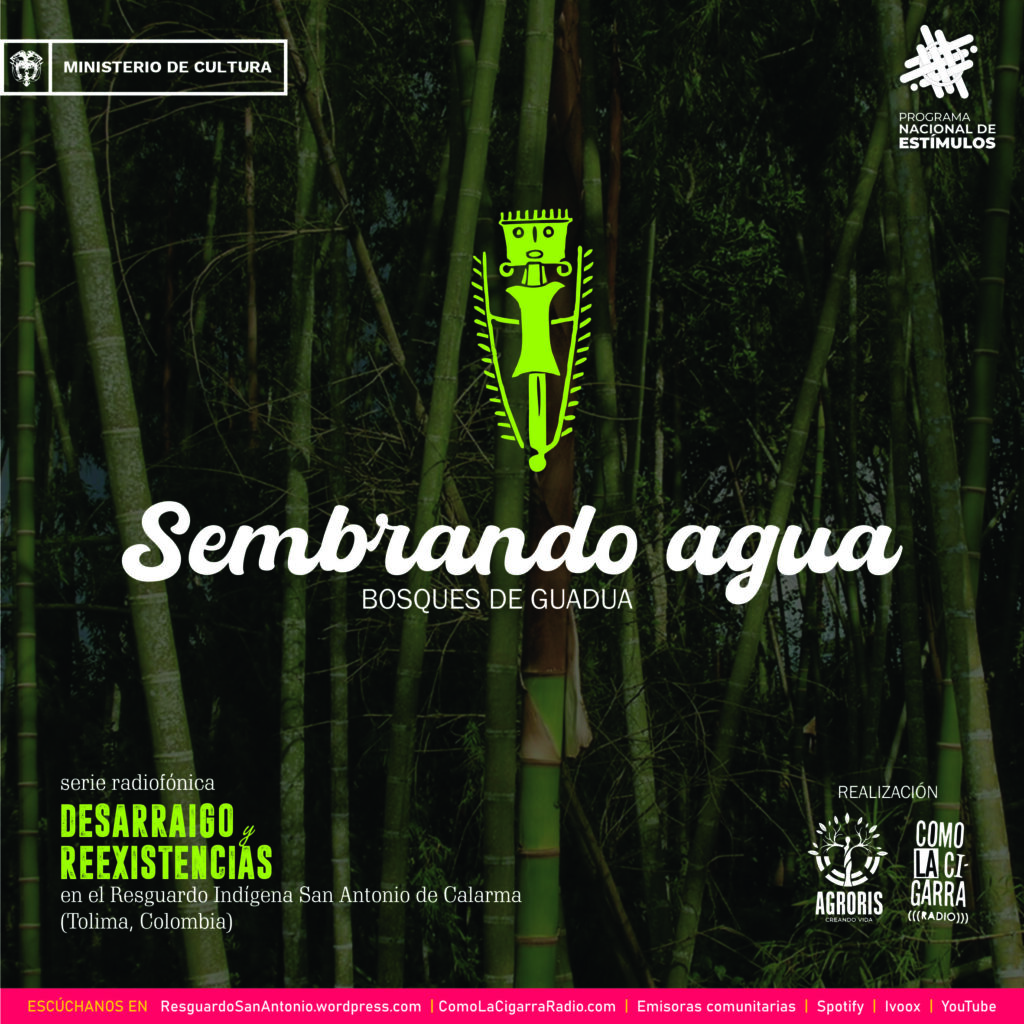 En este podcast se cuenta la historia de la siembra de agua en el Resguardo Indígena San Antonio de Calarma, a través de la siembra de la guadua, un cultivo ancestral para el pueblo Pijao. La líder Pijao Diana Isabel Villalba Yate y el compañeros Pablo Moncaleano nos cuentan como a través de un proyecto de forestería comunitaria, la comunidad del resguardo viene alternando el cultivo del café con la siembra de guadua, para aportar en el cuidado del agua.